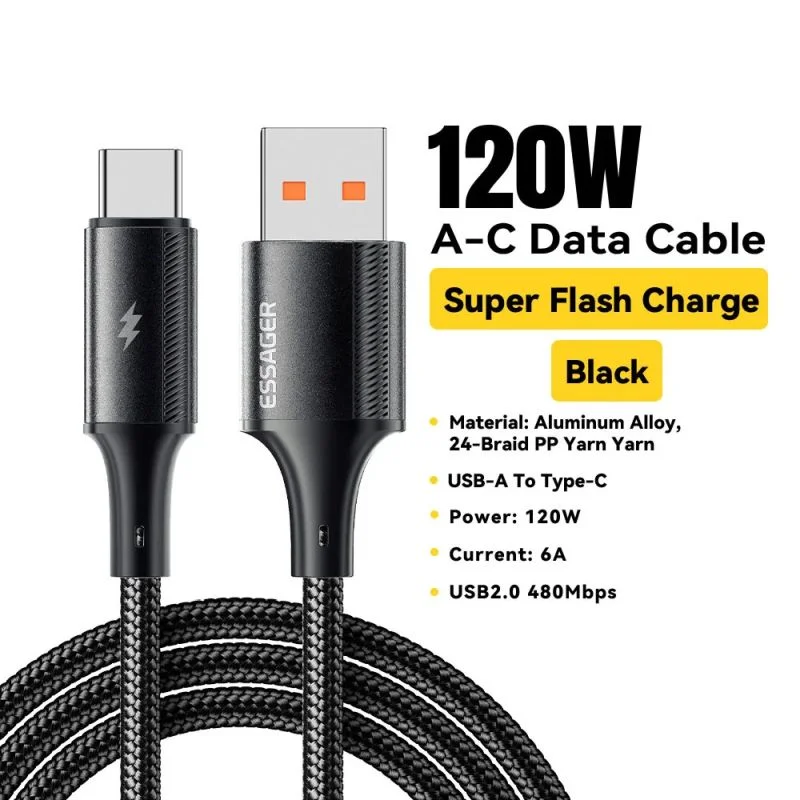 Essager 120W 6A USB Type C Cable Fast Charging Charger USB C Data Cord Type C Cable For Samsung OPPO