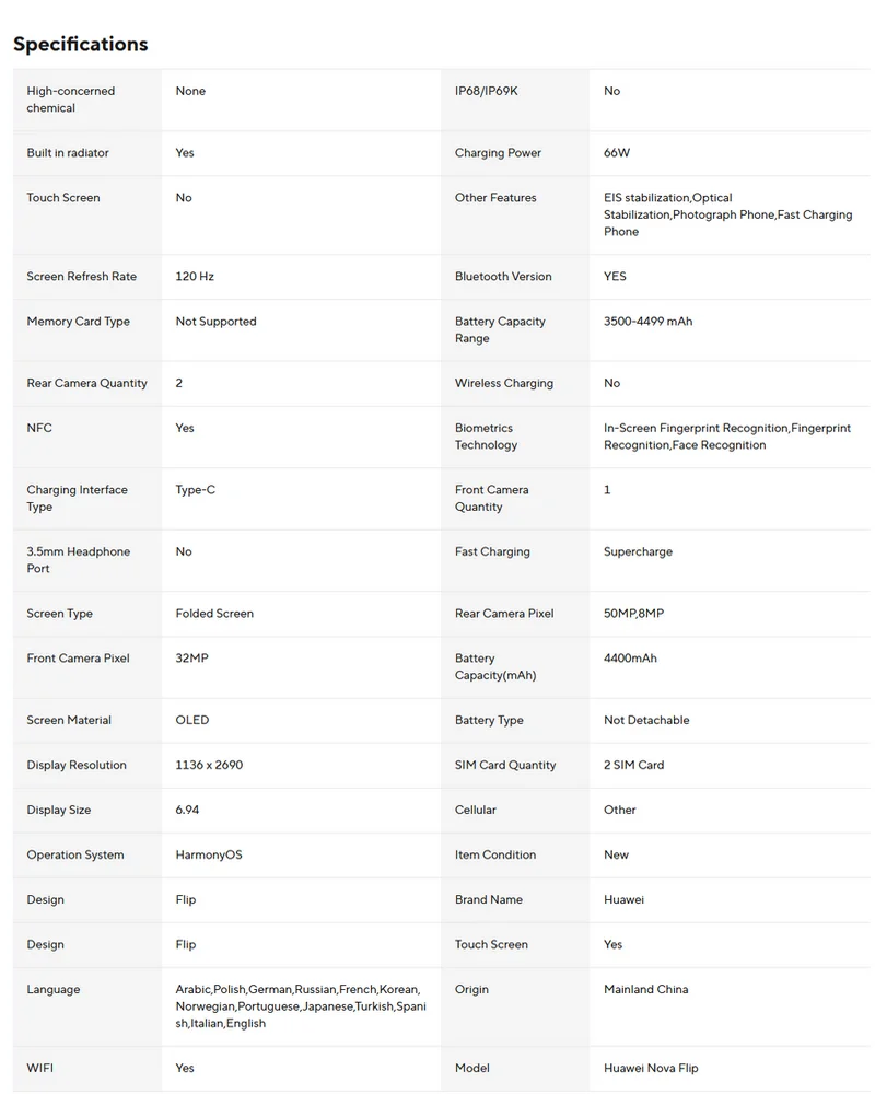 Accessroies: 1 x Huawei Nova Flip