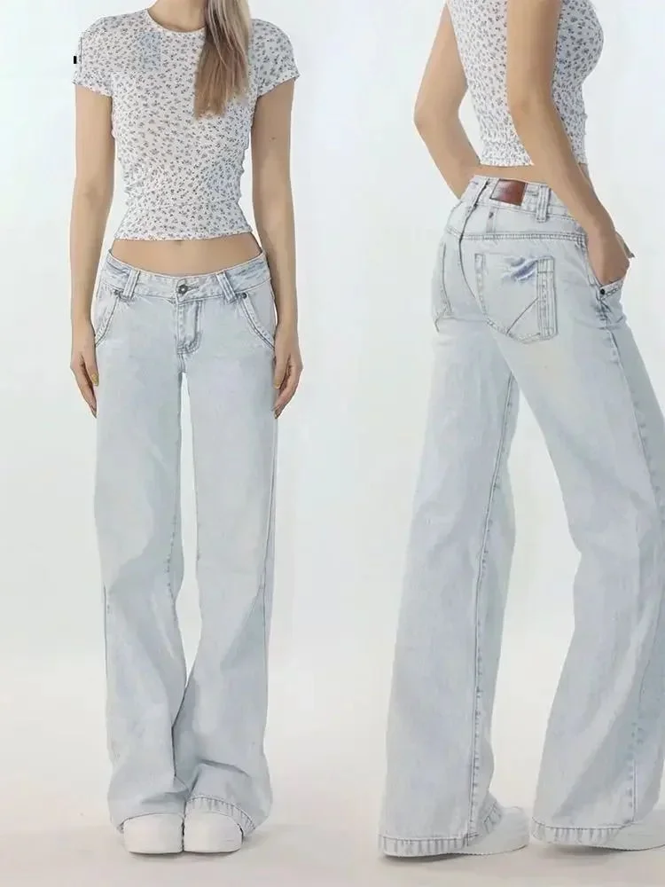 Low Waist Light Blue Denim Woman Jeans, Pants