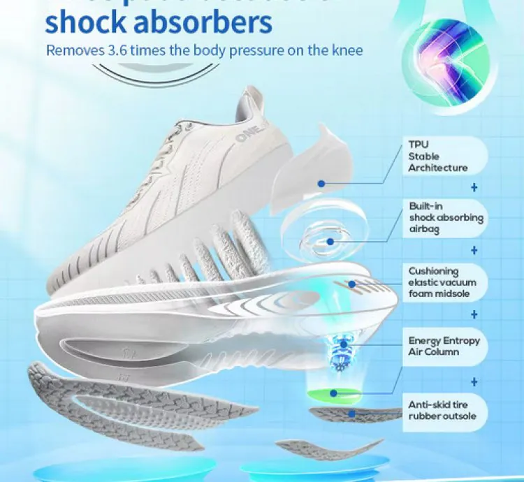 The Energy Entropy Air Column Cushioning System is strategically placed to absorb shock and deliver a responsive toe-off experience, making it ideal