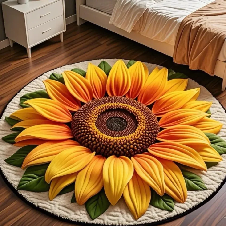 Non-slip Sunflower Living Room Decoration Fluffy Carpet