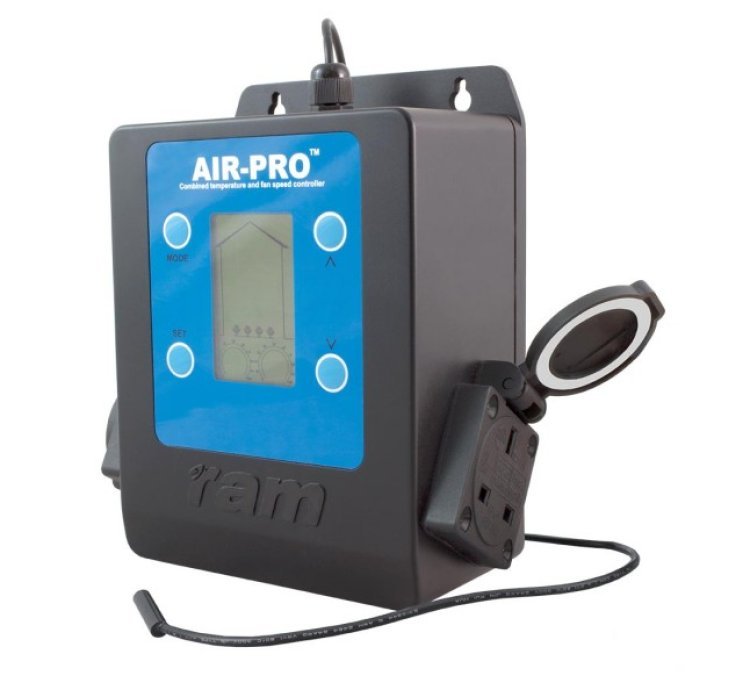 The RAM AIR-PRO II is an intelligent and silent indoor climate controller designed to control two inline/exhaust fans thermostatically, monitoring and keeping the desired room temperature and air pressure.