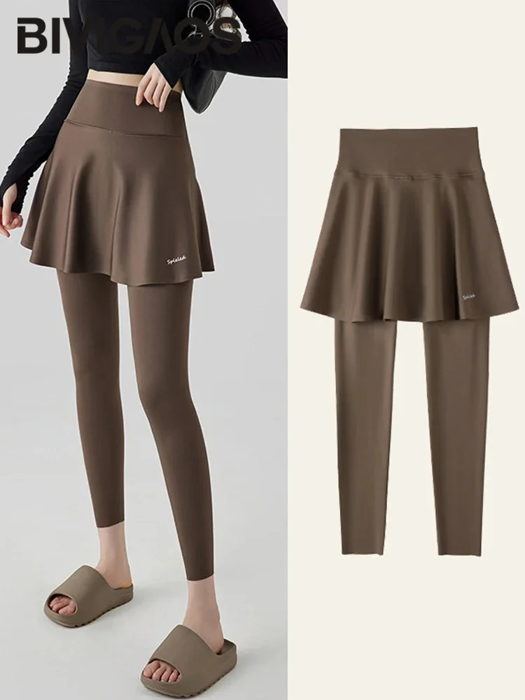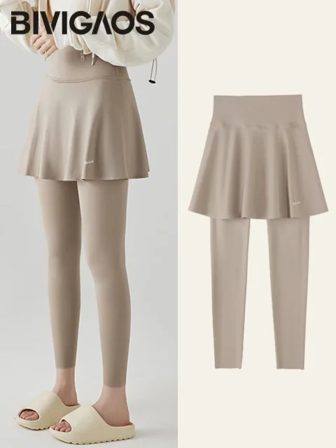 Two Pieces Seamless Fitness Pant Skirt.