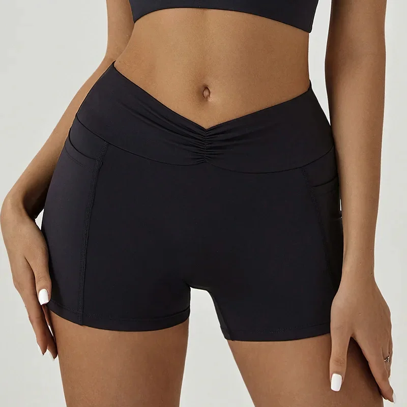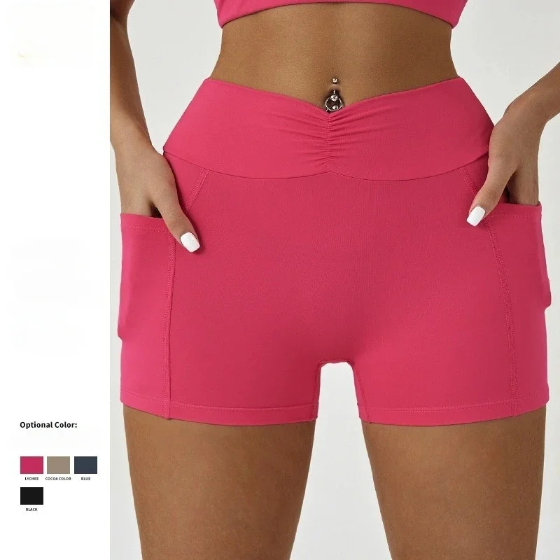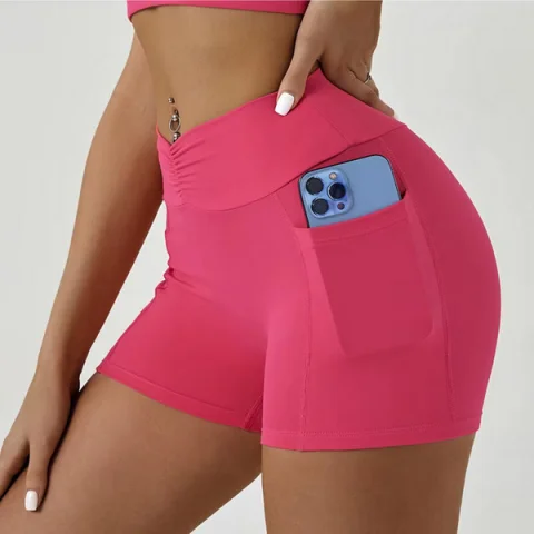 Women High Waist Athletic Running Spandex Workout Gym Yoga Shorts with Pockets